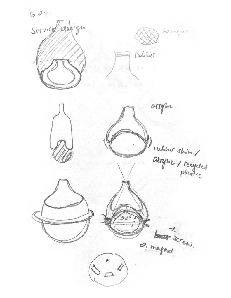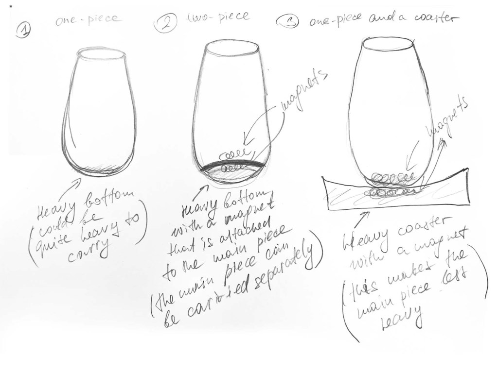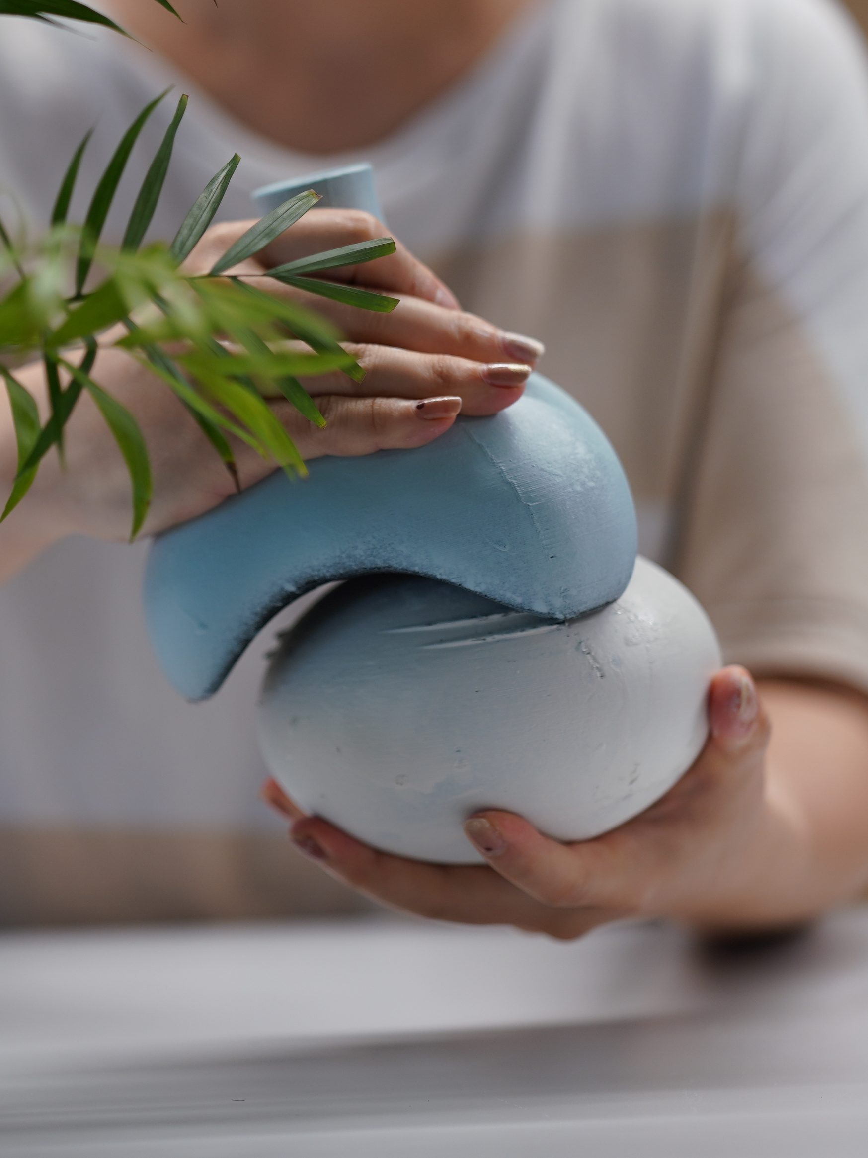 The roly-poly’s stability comes from its weighted base. We explored several different methods, including adding a magnetic bottom for enhanced adhesion, incorporating weighting materials into the integrated base of the vase. Finally, considering the vase’s weight might make it challenging to clean, we decided to separate it into two parts: the weighted base and the vase itself.
