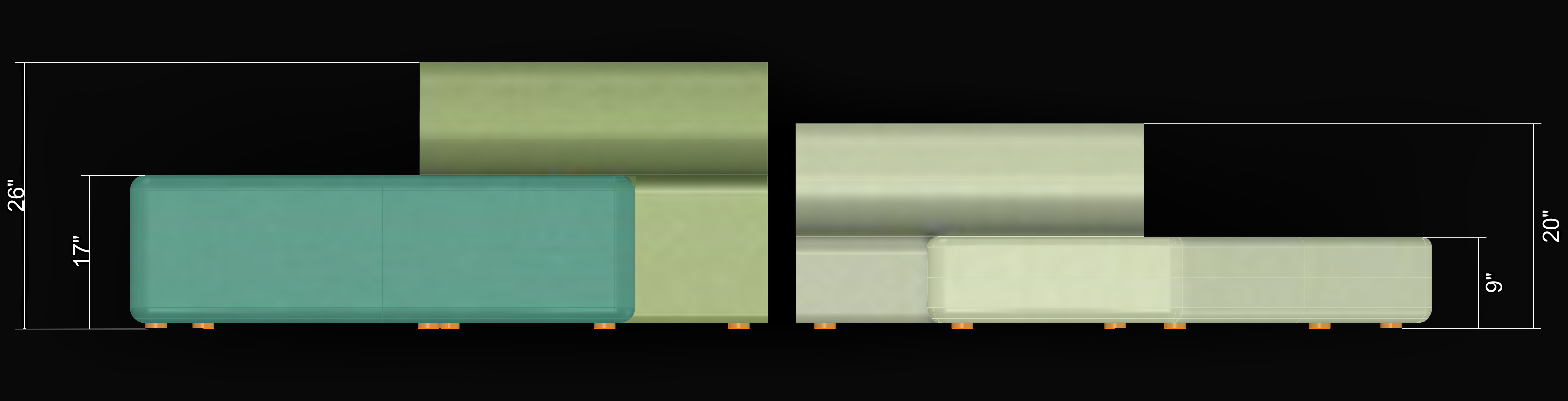 As evening approaches, the same furniture can be repurposed to create a bar environment. The sofa back modular can now serve as a stool to lean on.